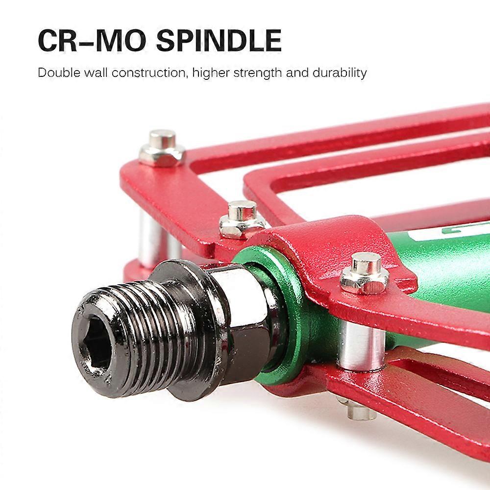 Bicycle Pedals Lightweight Non-Slip Aluminum Alloy MTB Cycle Pedals Platform for Mountain Road Bike The bike pedals are made with aluminum alloy and CR-MO spindle to ensure light weight and durability. With 18 anti-skid nails on each pedal, DU+ sealed bearing, and wide platform, the pedals will provide you wonderful Cycle experience. Features: Lightweight, durable aluminum mainframe with CR-MO spindle. 18 anti-skid nails on each pedal offer added grip and security. DU+ sealed bearings improve pedaling efficiency. Ultra-wide platform provides a comfortable riding experience. Suitable for mountain bike and road bicycle. Specifications: Material: Aluminum alloy + CR-MO Color: Black & Red / Red & Green / Titanium & Blue (optional) Size: 96.7 * 111mm / 3.8 * 4.4in Weight: 305g / 10.7oz Package List: 1 * Pair of Bike Pedals