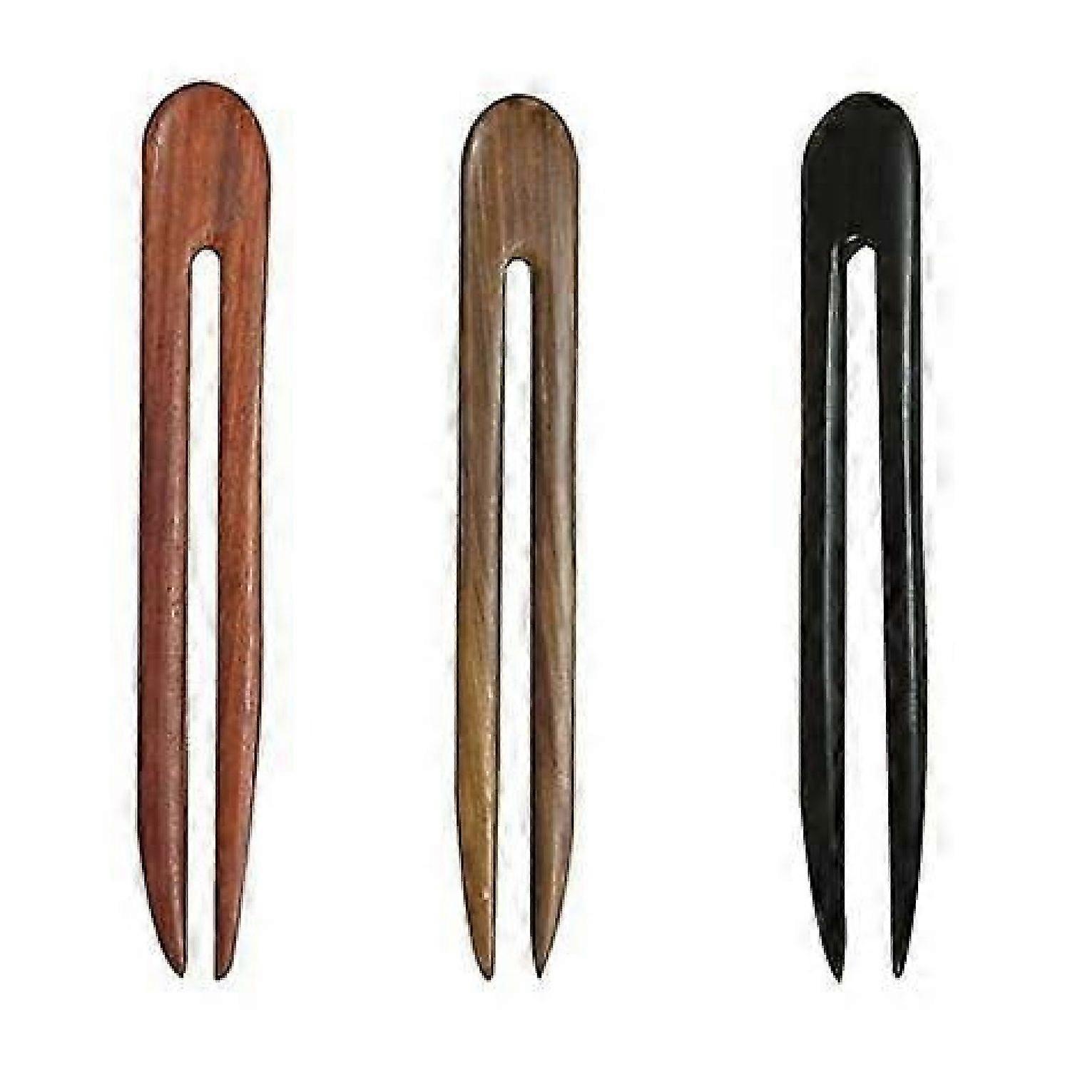 3pcs Hair Stick U Shaped Hairpin Vintage Style Wooden Hair Accessory (Brown + khaki + Black) 13cm -HK908