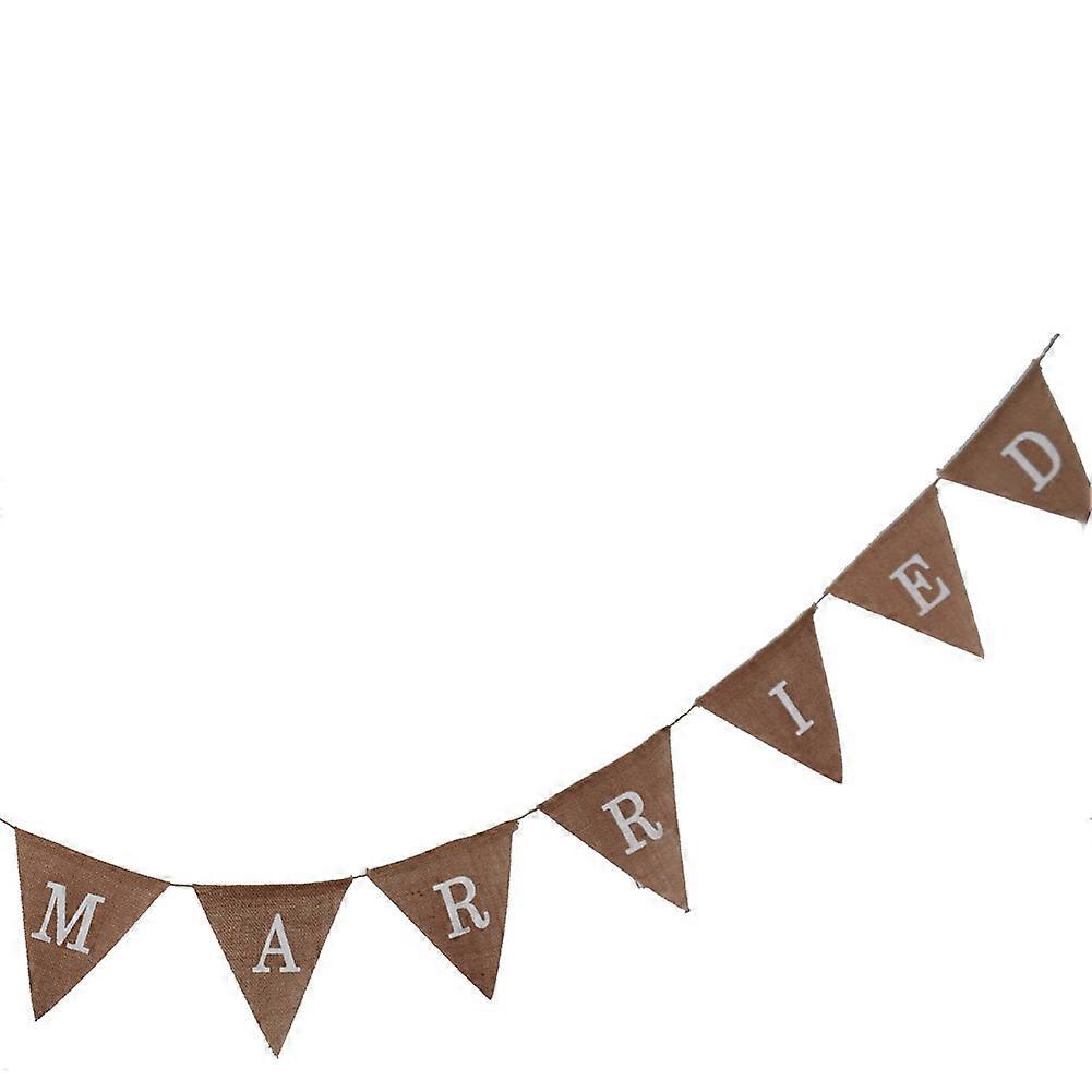 Burlap Triangle Banner Just Married Linen Flags 18.5x20cm Party