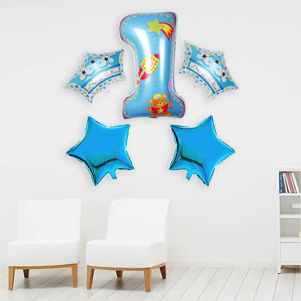 5Pcs Blue "1" Number + Star Crown Balloons 78x54cm for Party