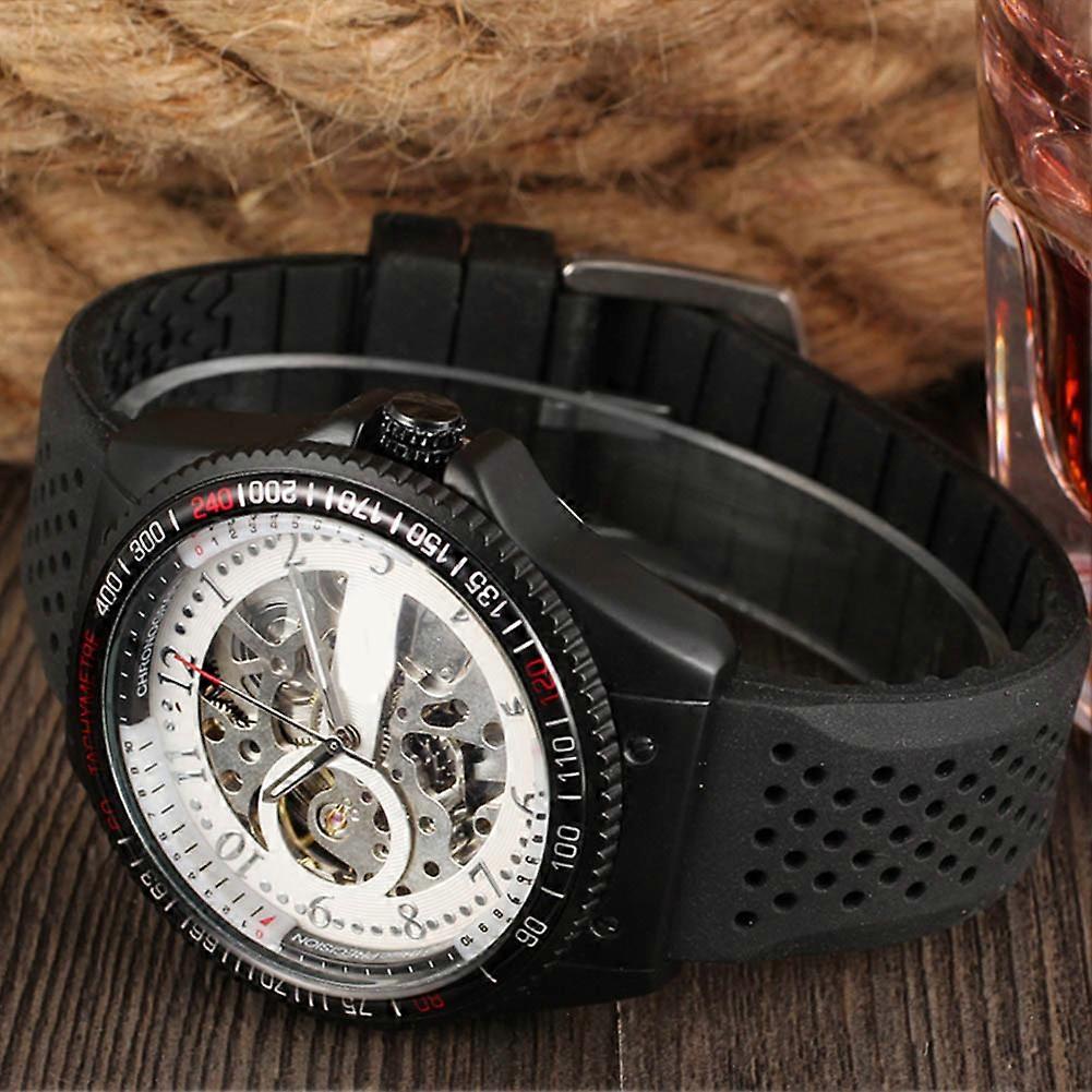WINNER Men’s Hollow Automatic Mechanical Watch 41mm White Waterproof