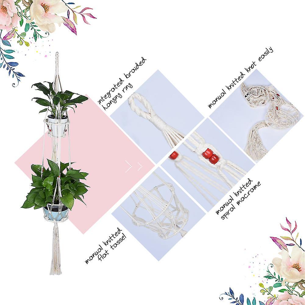 2 Pcs Macrame Plant Hanger 43.1in Cotton Rope, Linen Color