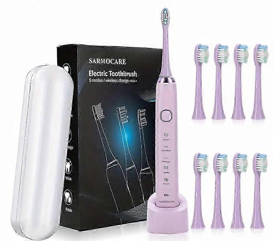 Sarmocare S100 Sonic Toothbrush USB Rechargeable Waterproof with 8 Brush Heads for Professional Dental Care and Oral Hygiene