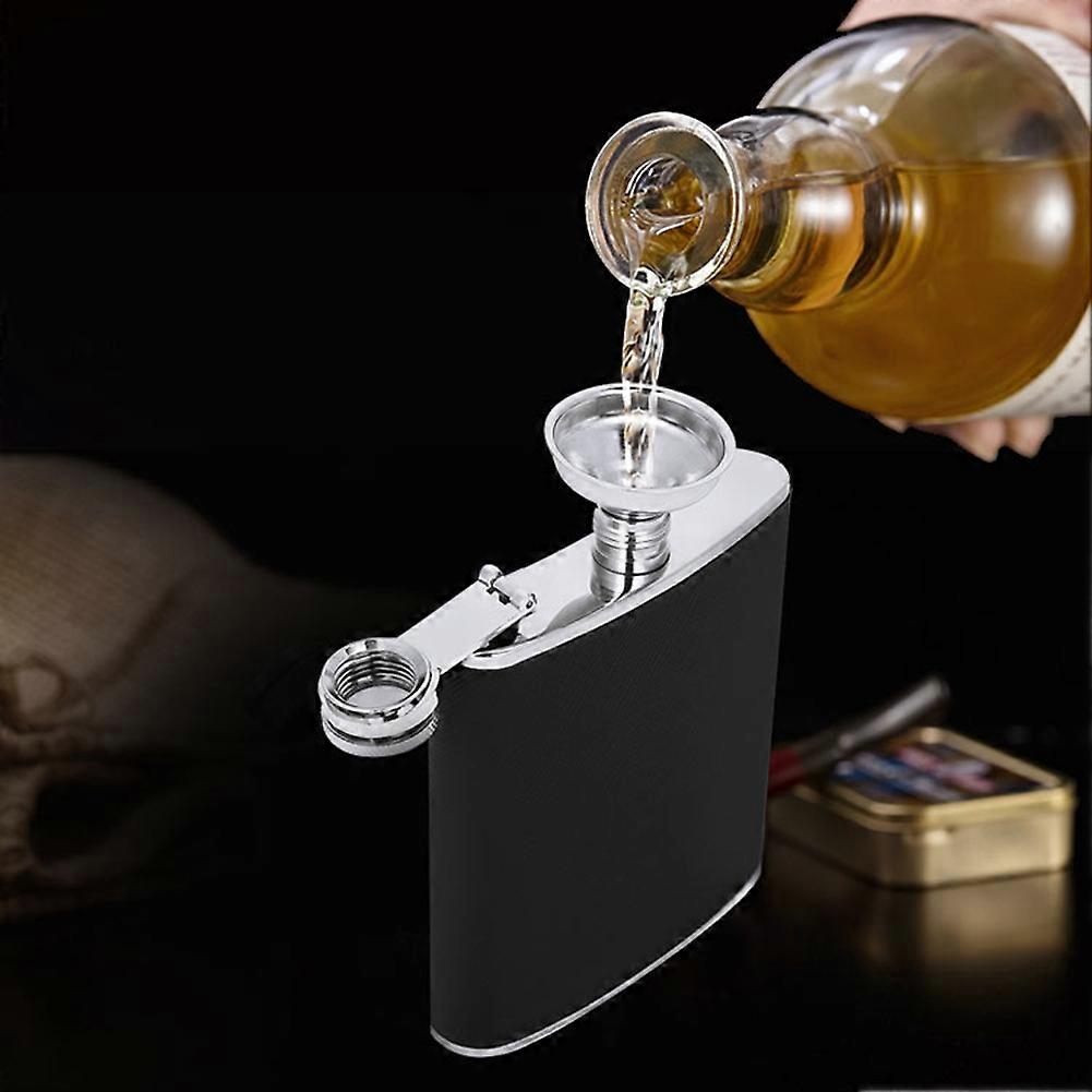 Stainless Steel 7oz Black Leather Hip Flask with Funnel & 2 Cups