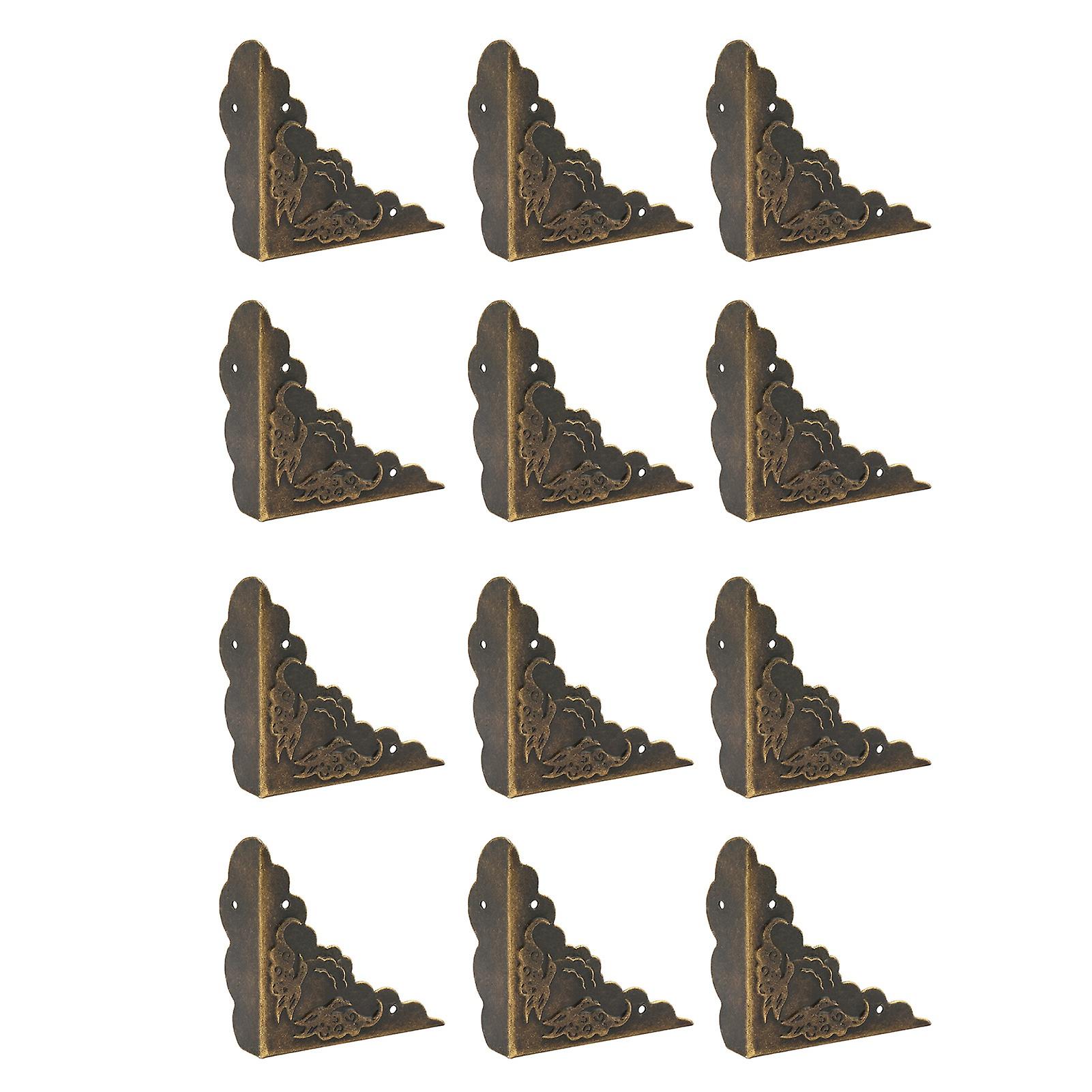 12Pcs Vintage Bronze Iron Corner Protectors 43x43x14mm for Wood