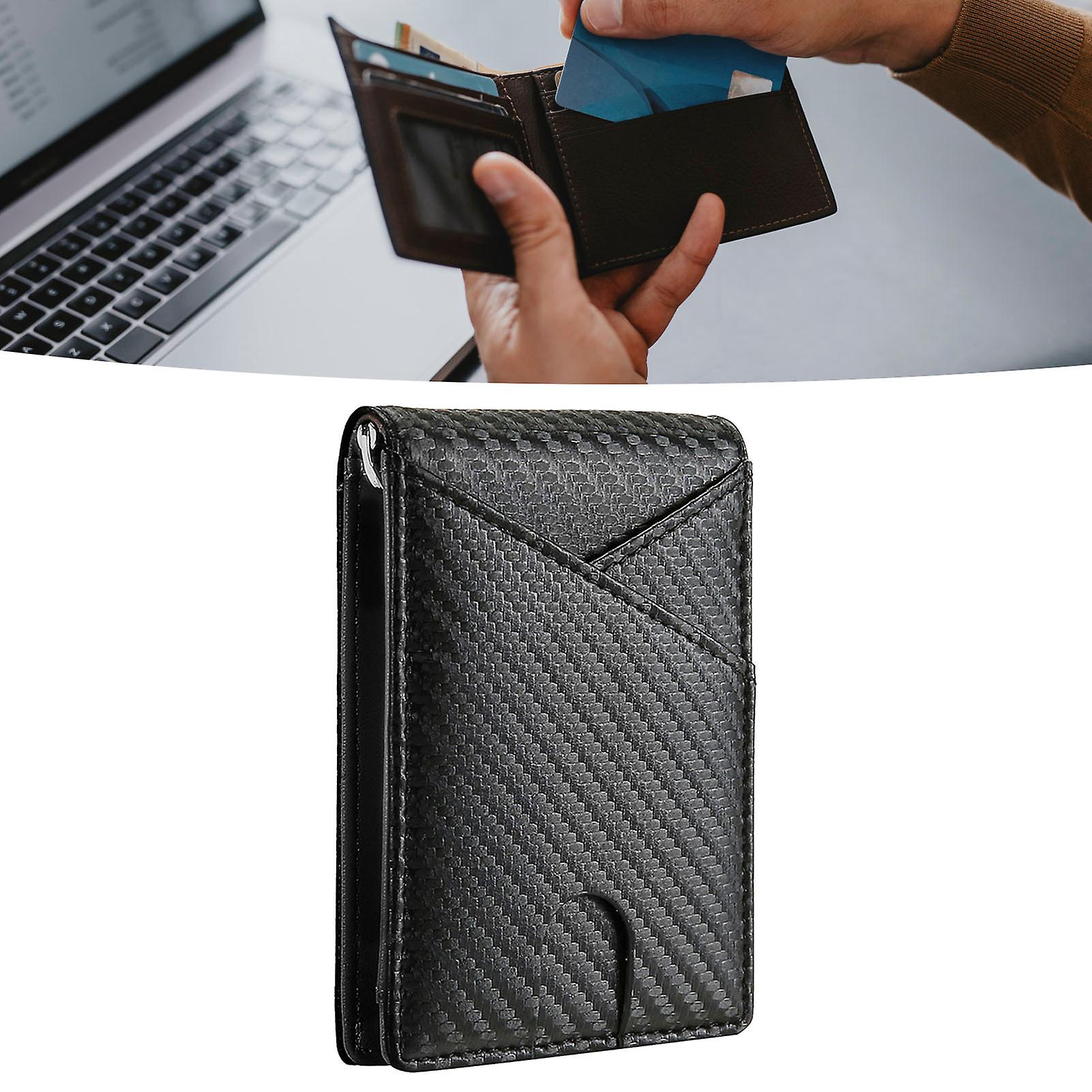 Men's Black PU Leather Wallet with Money Clip, 10.5x8x1.2cm