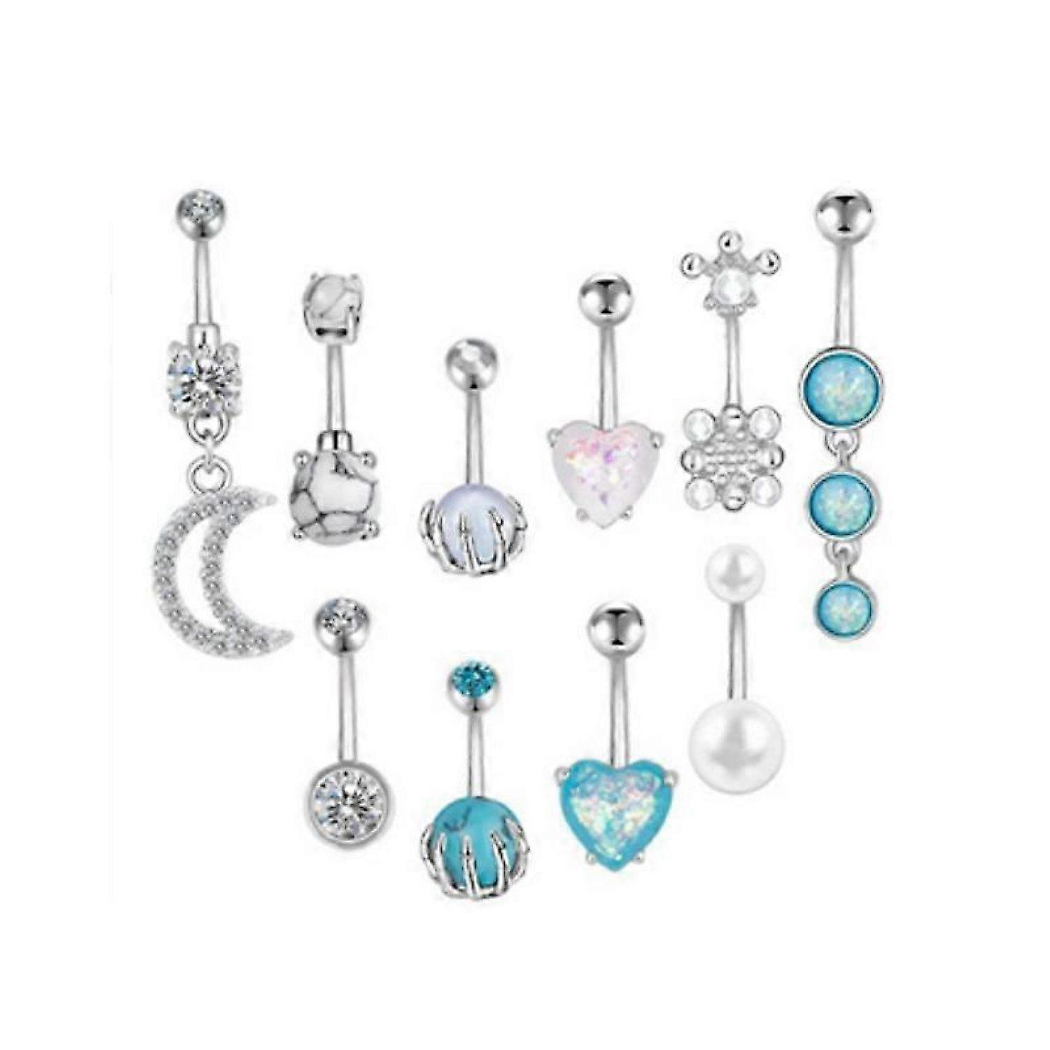 10Pcs Belly Button Rings for Women Surgical Steel Acrylic CZ Screw Navel Rings Butterfly Skull Heart Snake Belly Rings Body Piercing Jewelry -HK908