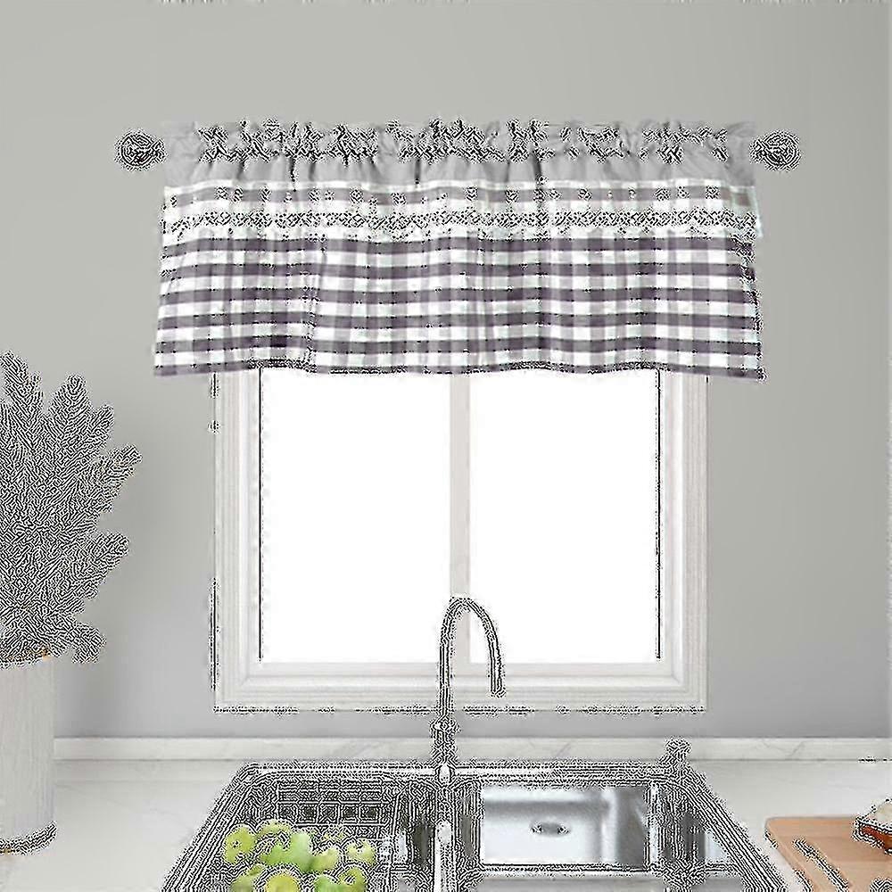 Luxury Kitchen Window Curtain Decor, a Plaid Lace Cafe Valance Topper and Drapes for Farmhouse Home Decor