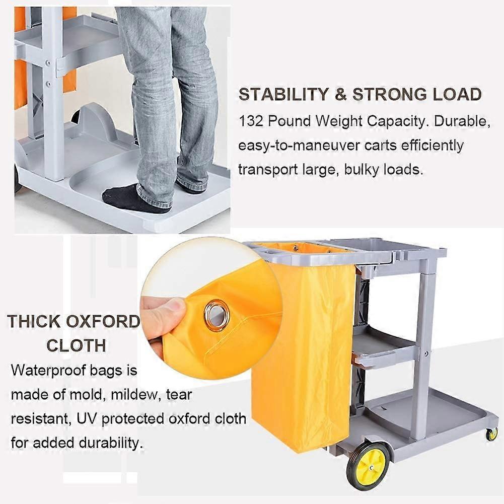 Commercial Janitor Cart, Waterproof Plastic Cleaning Trolley with 3 Shelves and Mop Mount, Blue Cleaning Supply Caddy