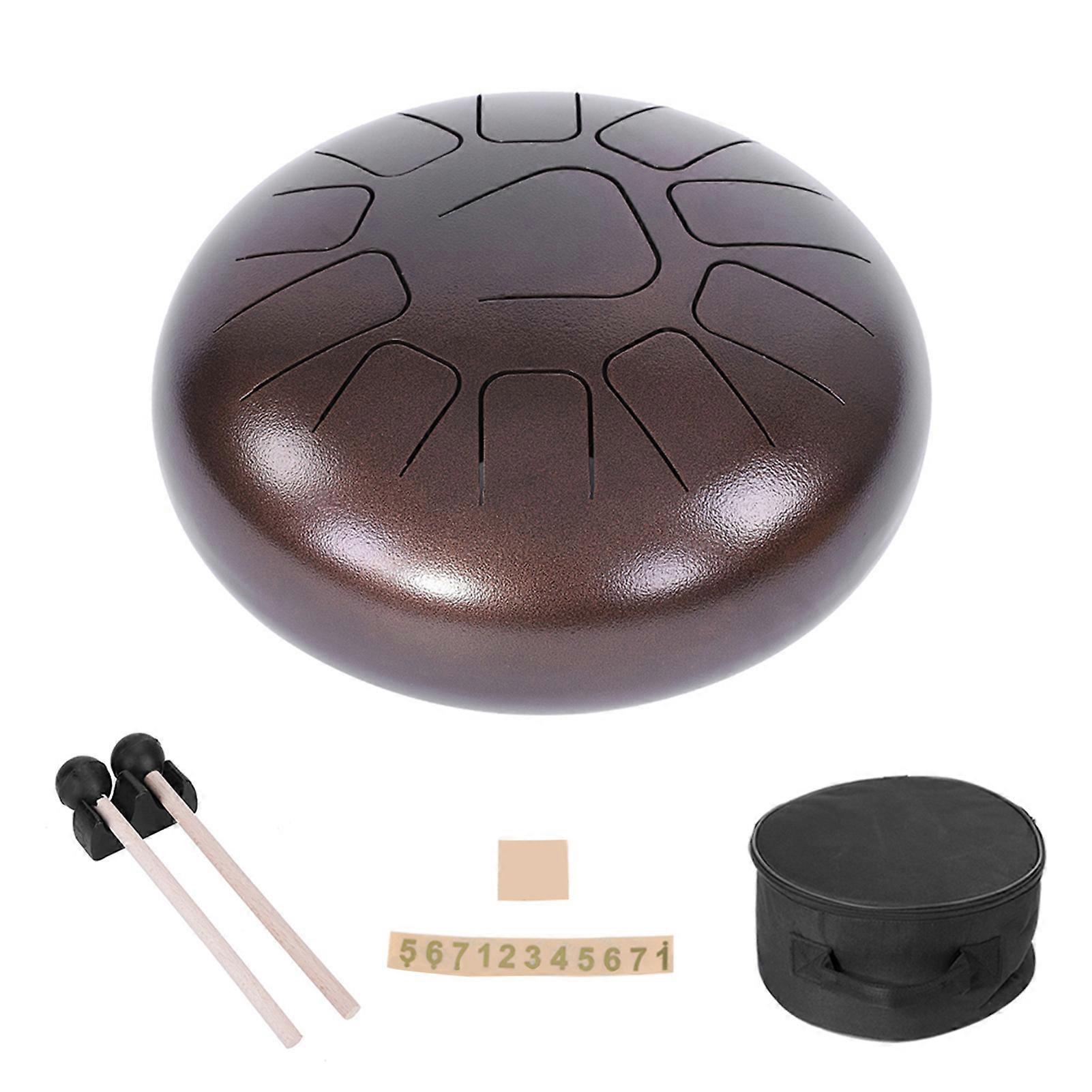 12'' Brown Steel Tongue Drum 11-Note Handpan with Bag & Mallets