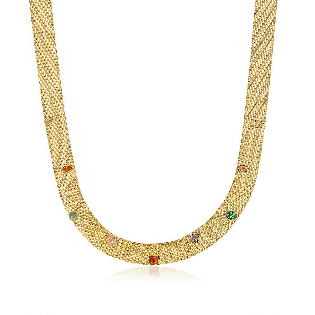 Necklace and Bracelet Set, Braided Ribbon with Colorful Zircon, Stainless Steel Luxury Jewelry
