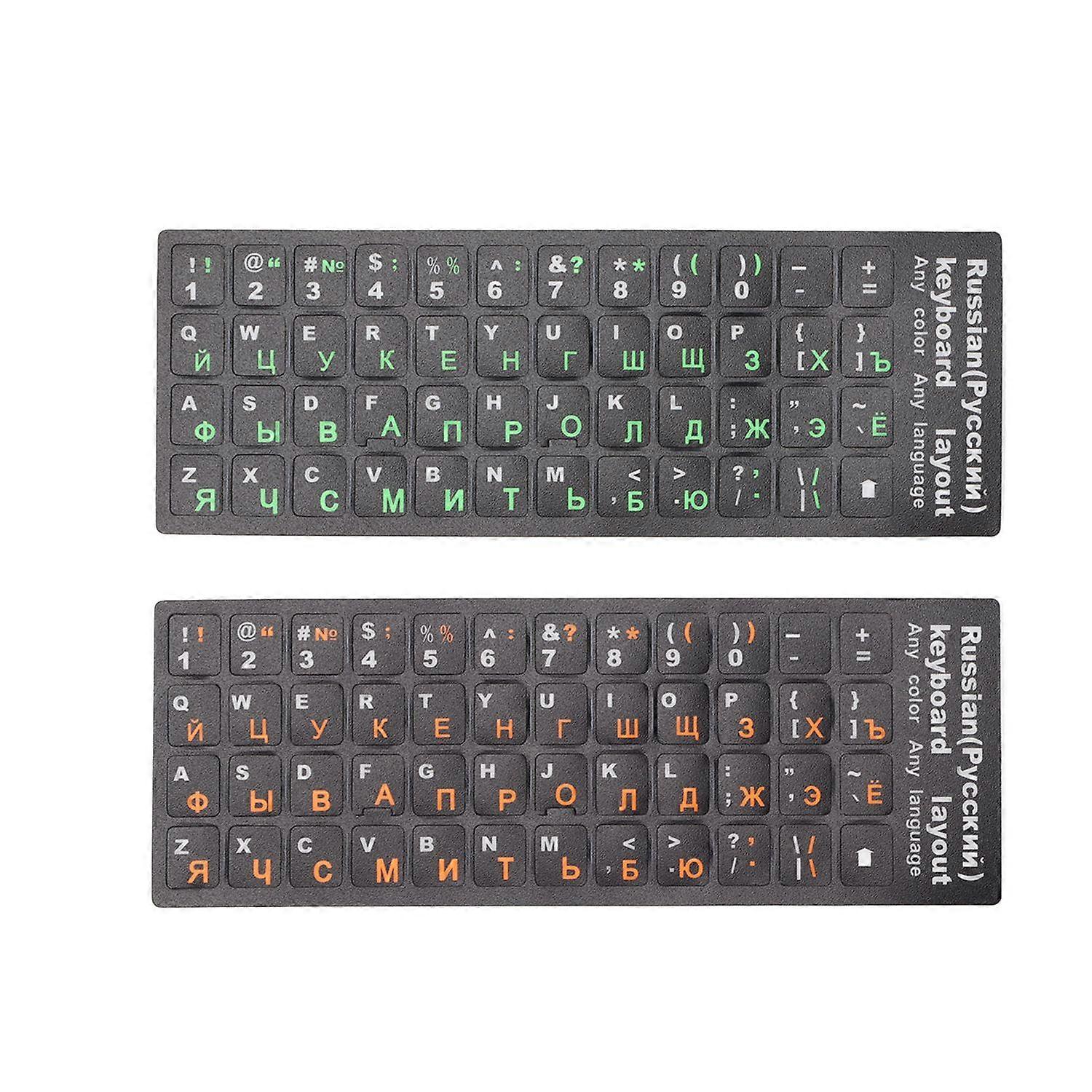 2Pcs Russian Keyboard Stickers Unique Coating Waterproof Dustproof Russian Alphabet Keyboard Stickers for PC Laptop 1 Green 1 Orange
