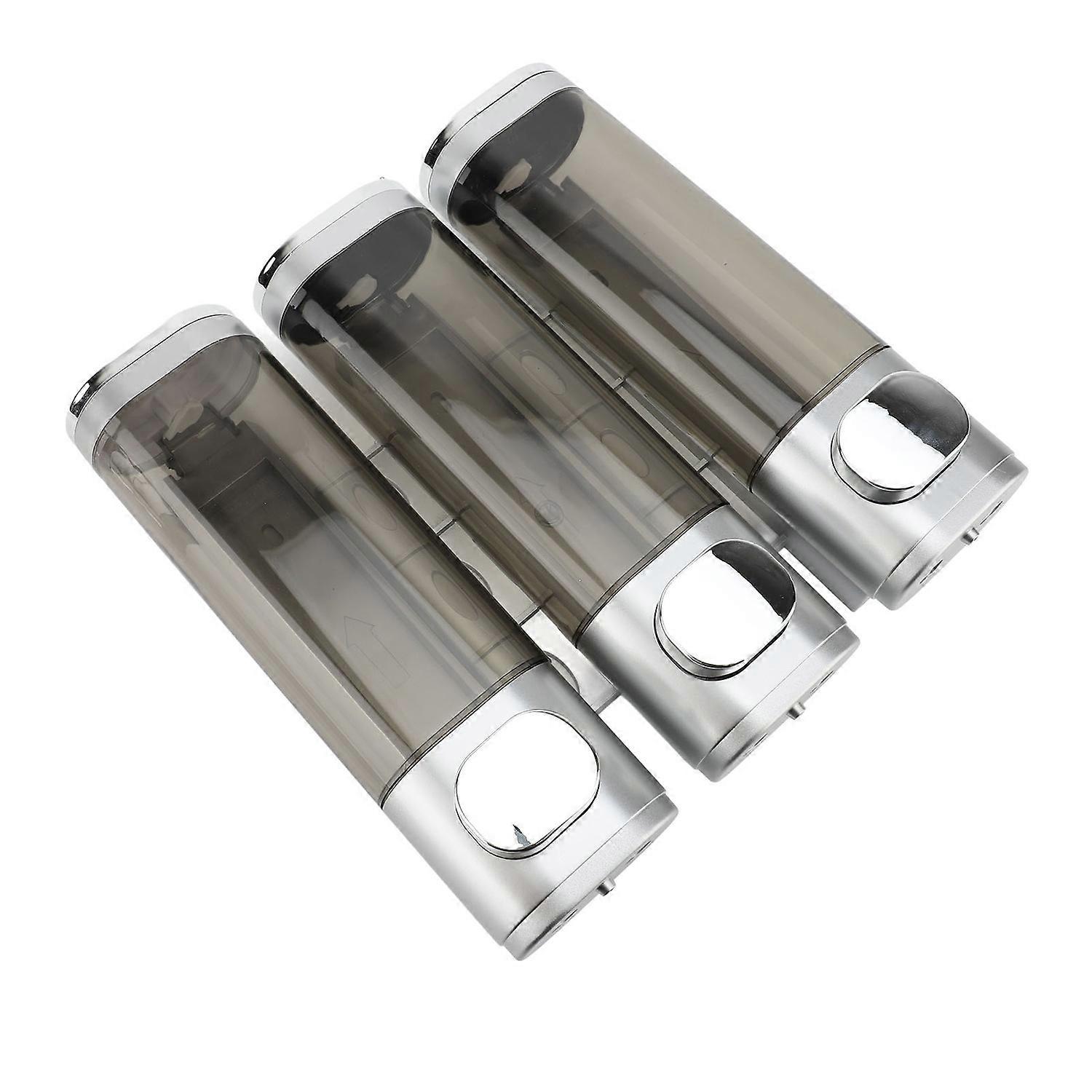3 in 1 300ml Press Liquid Soap Dispenser Wall Mount Bathroom Shower Shampoo Hair Conditioner Dispenser Container Silver