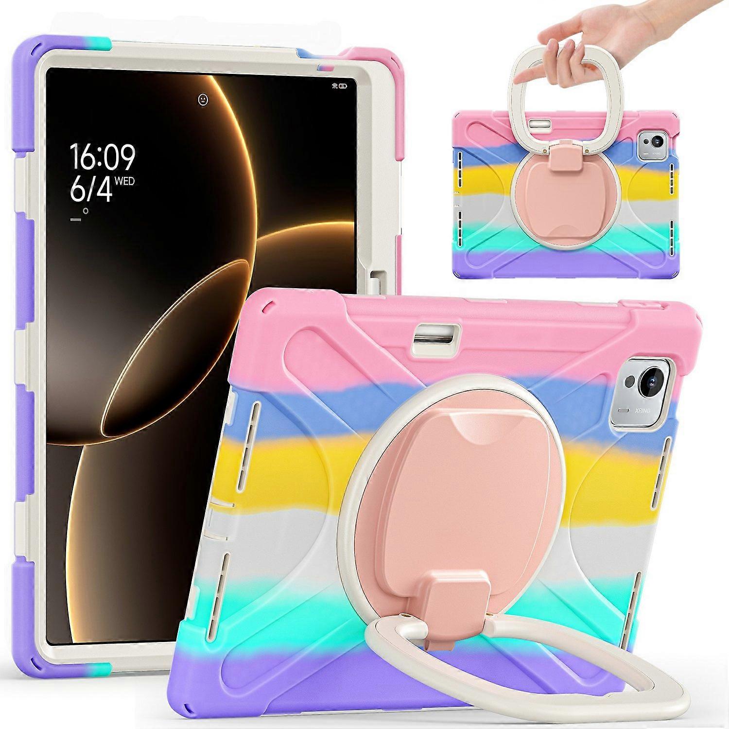 For Xiaomi Pad 7 Ultra Case TPU+PC+Silicone Tablet Cover Swivel Kickstand Handle Grip