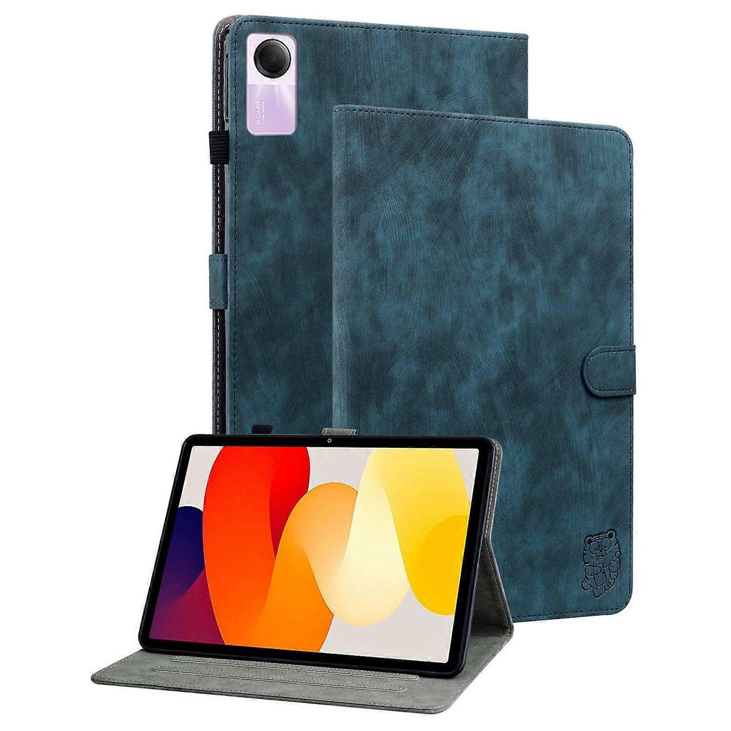 For Xiaomi Redmi Pad SE Cover Cute Tiger Imprint Leather Tablet Case with Card Slots - Dark Blue