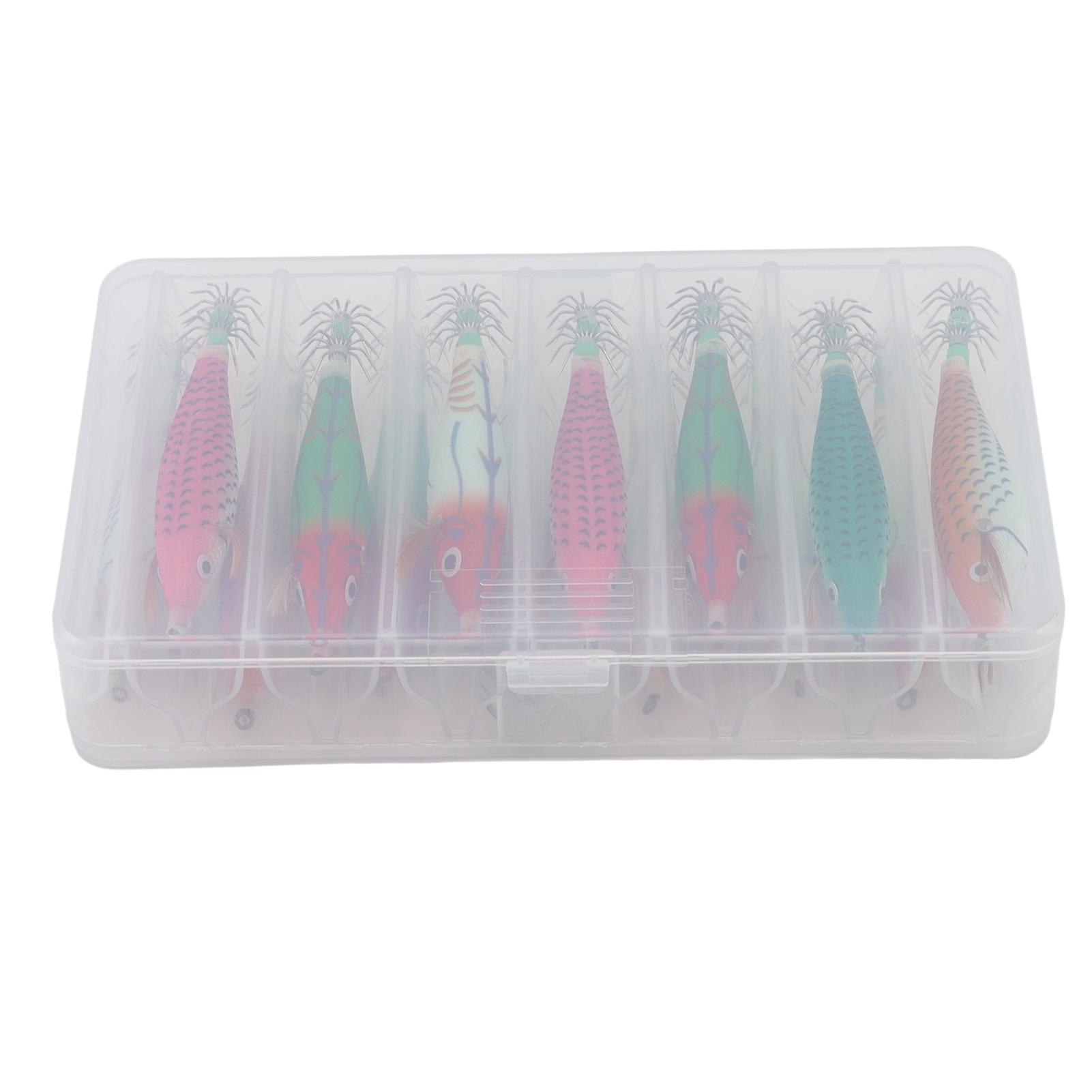 14Pcs Luminous Squid Fishing Bait 8cm Artificial Shrimp Shape Fishing Lure Set with Storage Box