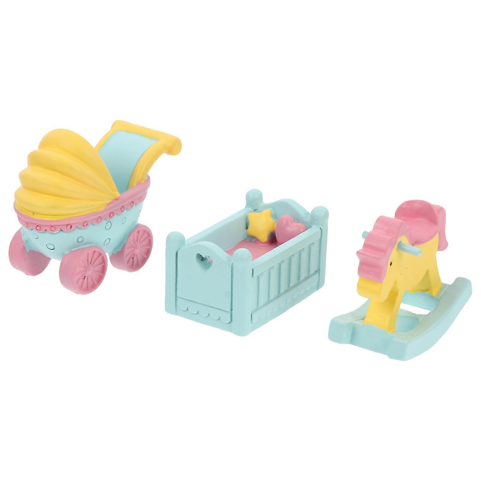 Cake Ornament 3Pcs Kids Birthday Cake Decoration Rocking Horse Stroller Assorted Color Resin Material For Special Events