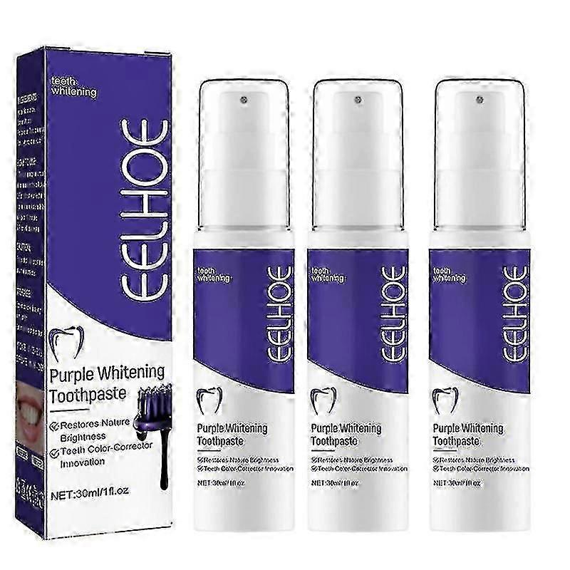 3-Pack Purple Brightening Toothpaste for Stain Removal and Fresh Breath, UK Dental Care Essential