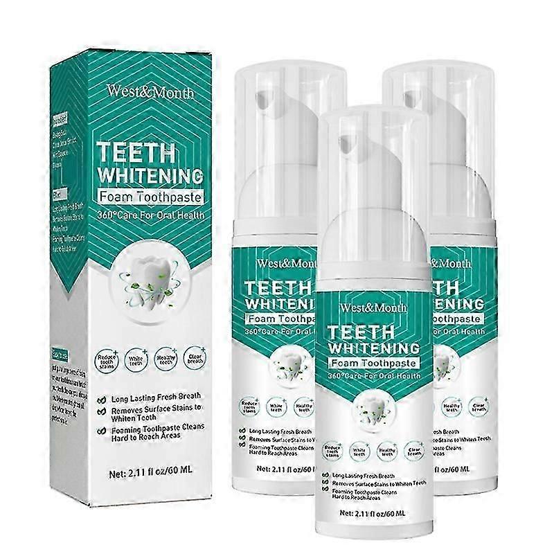 3-Pack 60ml Teeth Whitening Mousse Foam and Mouthwash Combo for Fresh Breath and UK Dental Care