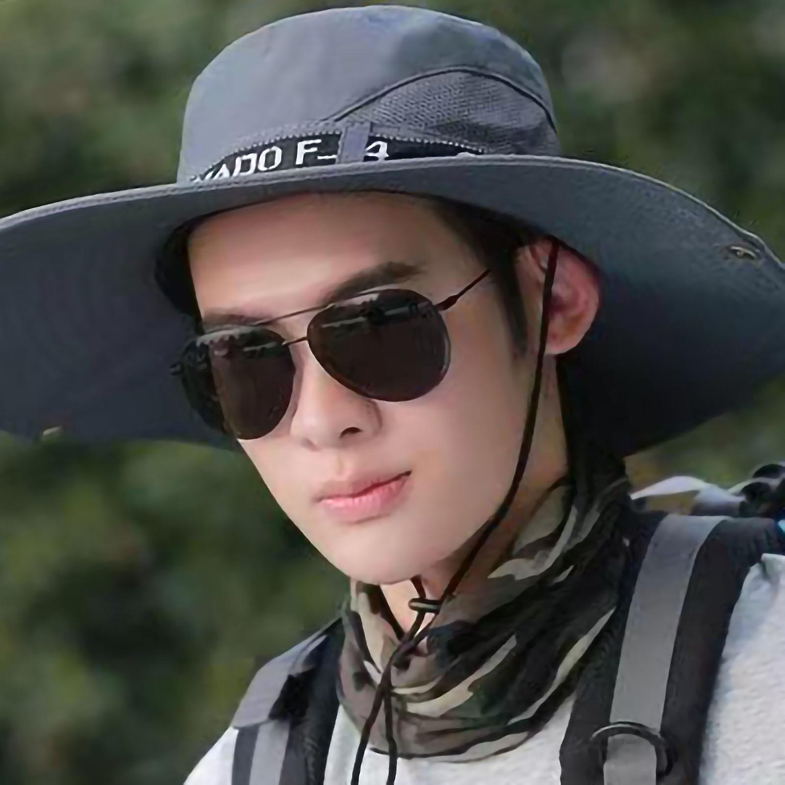 Male Sun Hat Summer Fashionable Big Brim Semi Breathable Big Brim Men Hat for Outdoor Grey