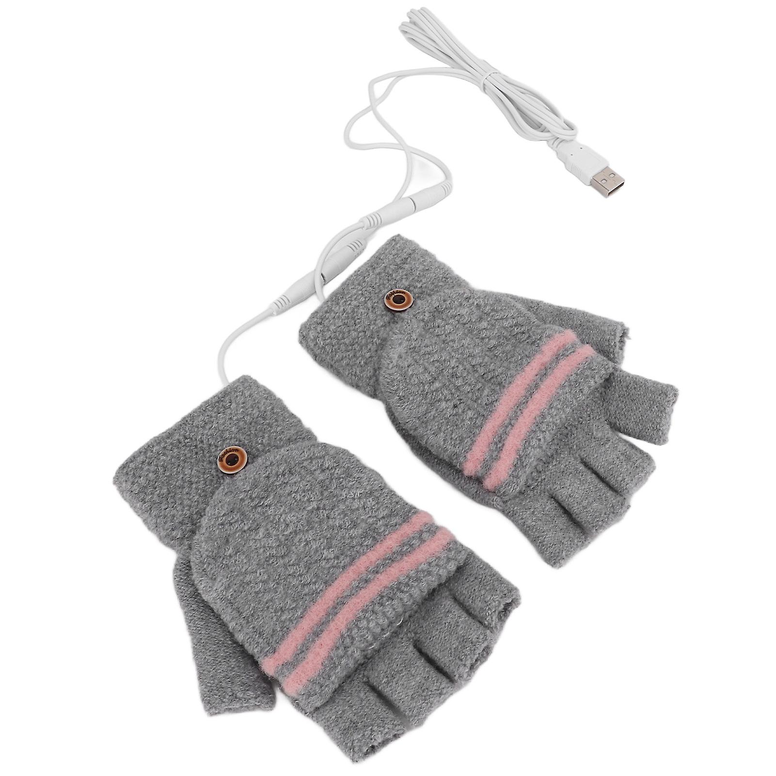 1Pair USB Heated Typing Gloves Mitten Knitting Hand Warmer Gloves Fingerless for Typing Laptop PhoneGray