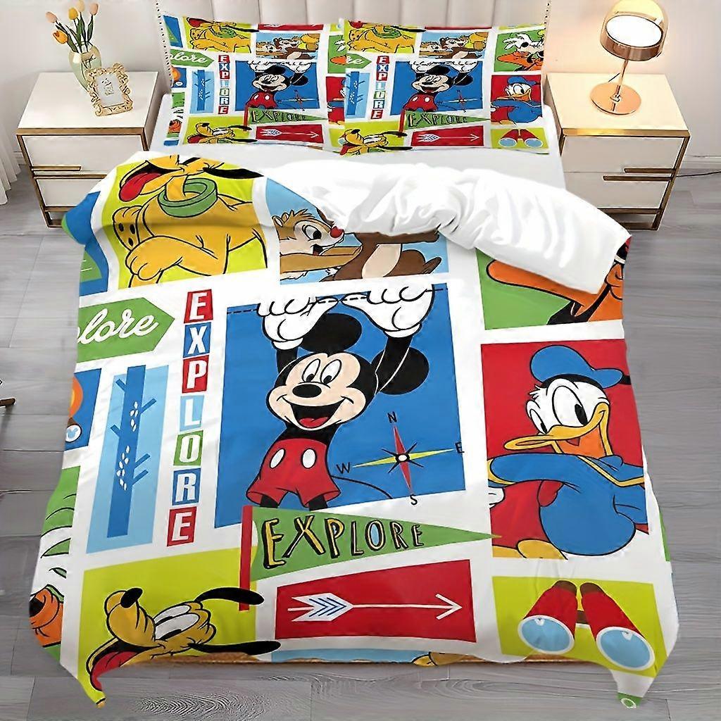 TE840 Mickey Mouse 3pcs Bedding Set - Cartoon Cute Soft, Suitable for Bedroom - Includes Duvet Cover, 2 Pillowcases with Cute Character
