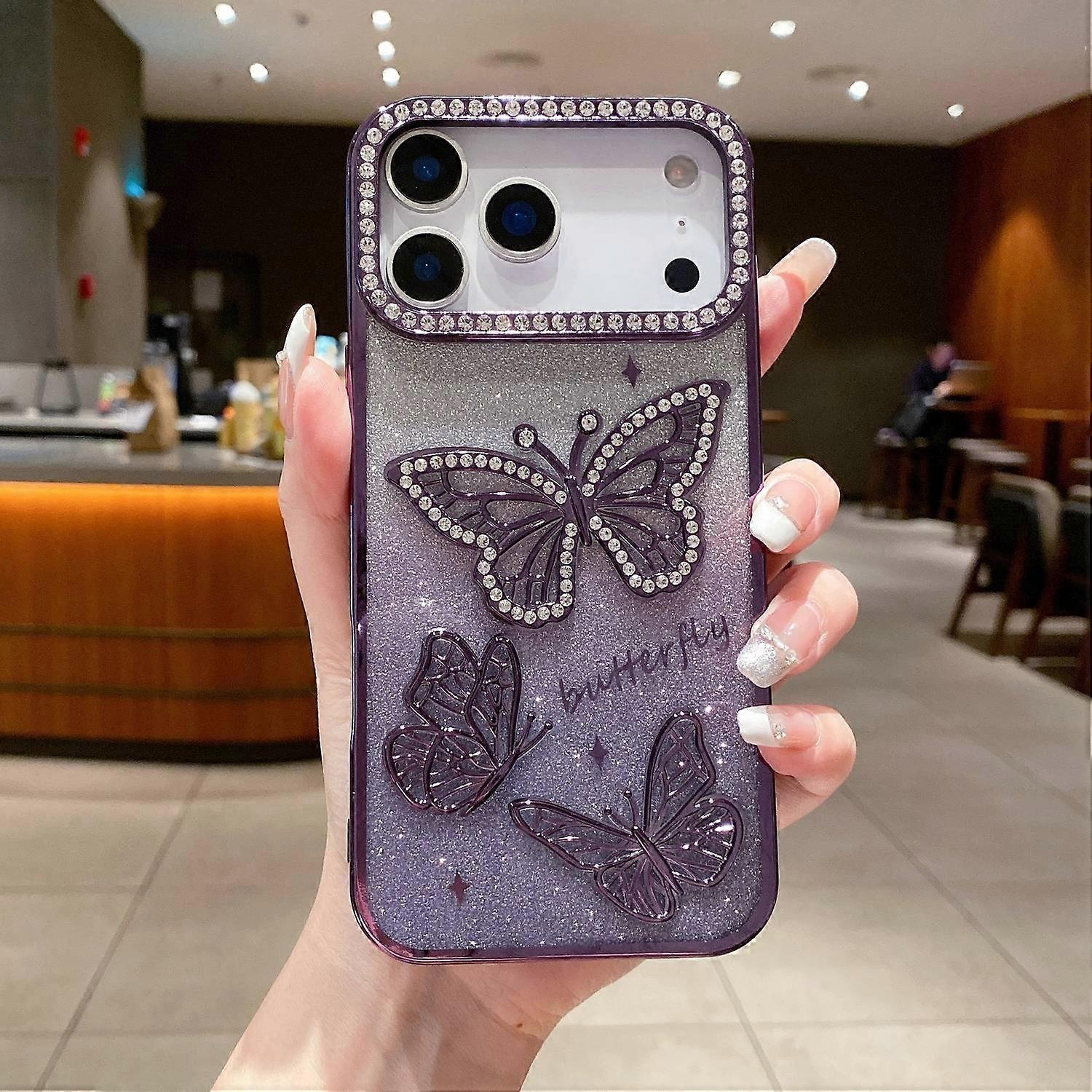 For iPhone 17 Pro Case Rhinestone Butterfly Decor TPU Phone Back Cover - Purple