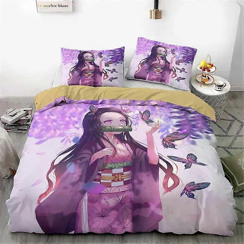 TE2413 3pc Duvet Cover with Pillowcase Ne-Zuko Anime Teen Comforter Cover Set Super Soft Bedding Set Bedroom Decorate Child Gift