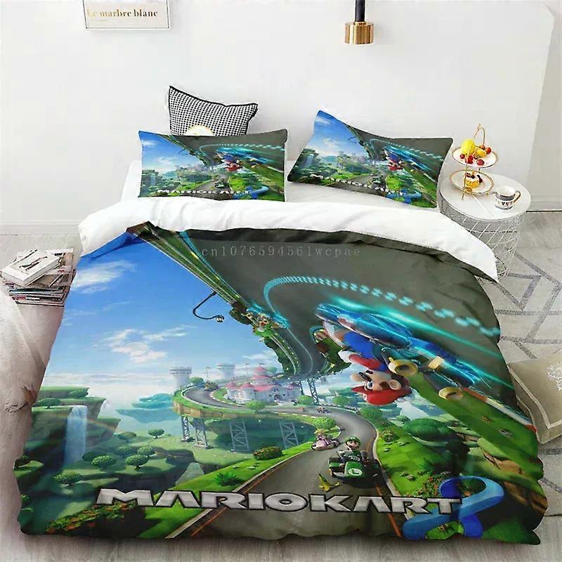 TE2542 Duvet Cover Cartoon Mario Cute Single Double Size Children Adult Bedroom Decoration Gift Three-piece Set Soft and Comfortable