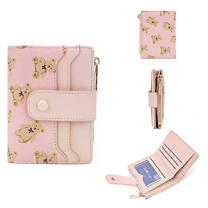 Women Short Wallets PU Leather Female Bifold Purses Cute Bear Card Holder Wallet for Girl Small Zipper Wallet with Coin Purse