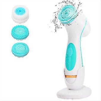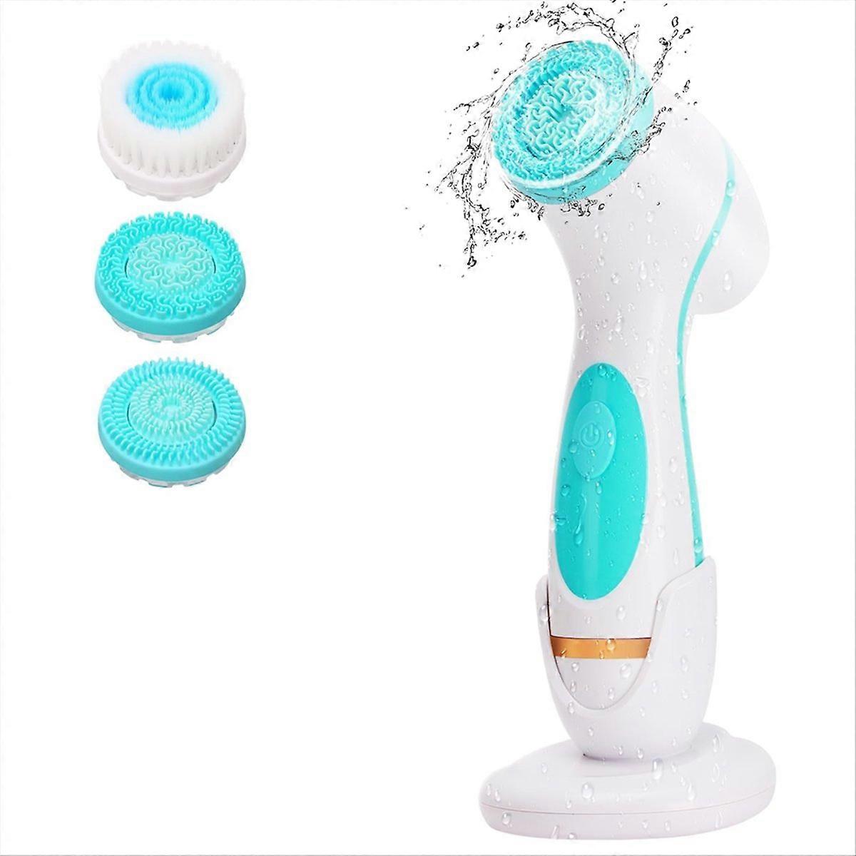 Cleansing Device, Waterproof Dual-Rotation Face Scrubber Exfoliator with 3 Brush Heads, for Cleansing Skin Care B