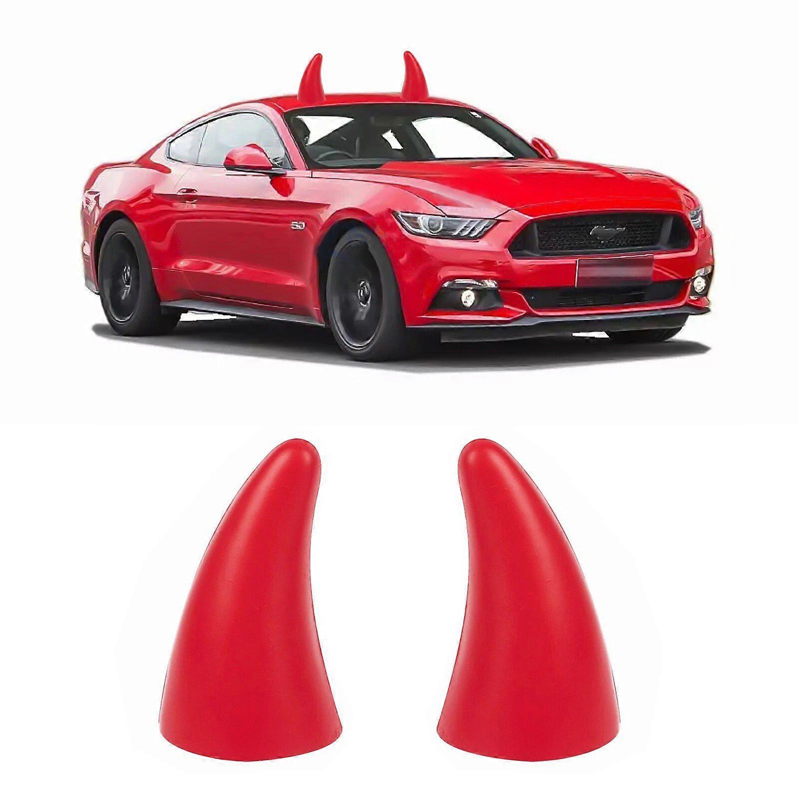2Pcs Red Devil Bull Horn Antenna Roof Stickers Decor For Car Front Rear Bumper Hot