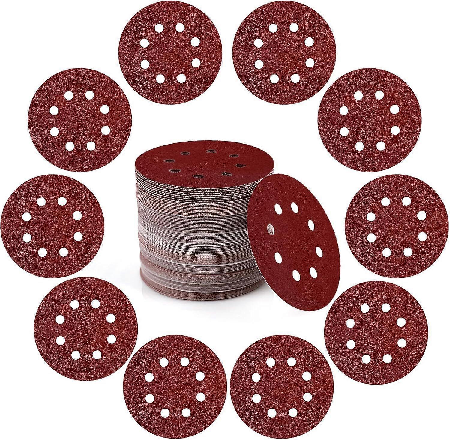100 PCS 5 Inch Sanding Discs Hook and Loop Sandpaper for Random Orbital Sander 40 Grit