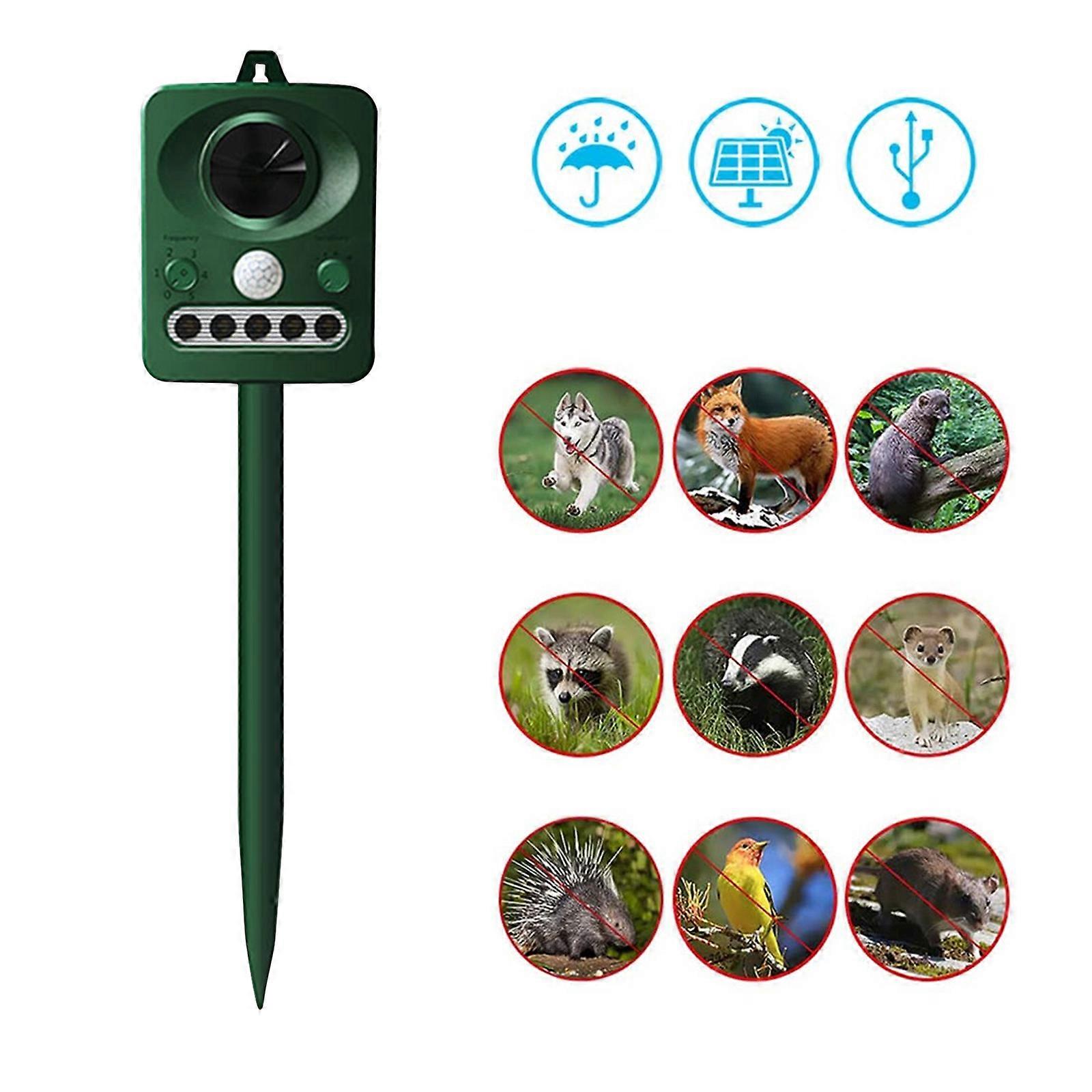Ultrasonic Solar Animal Repeller 11x6x31cm Waterproof Green