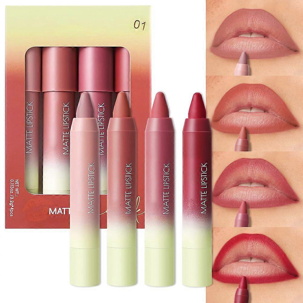 4Pcs Matte Lip Lipstick Crayon Lip Liner Thick Pencil, High-Pigment Outline Lips, Non-sticky Matte Velvet Texture, Waterproof & Smudge-Proof Longwear