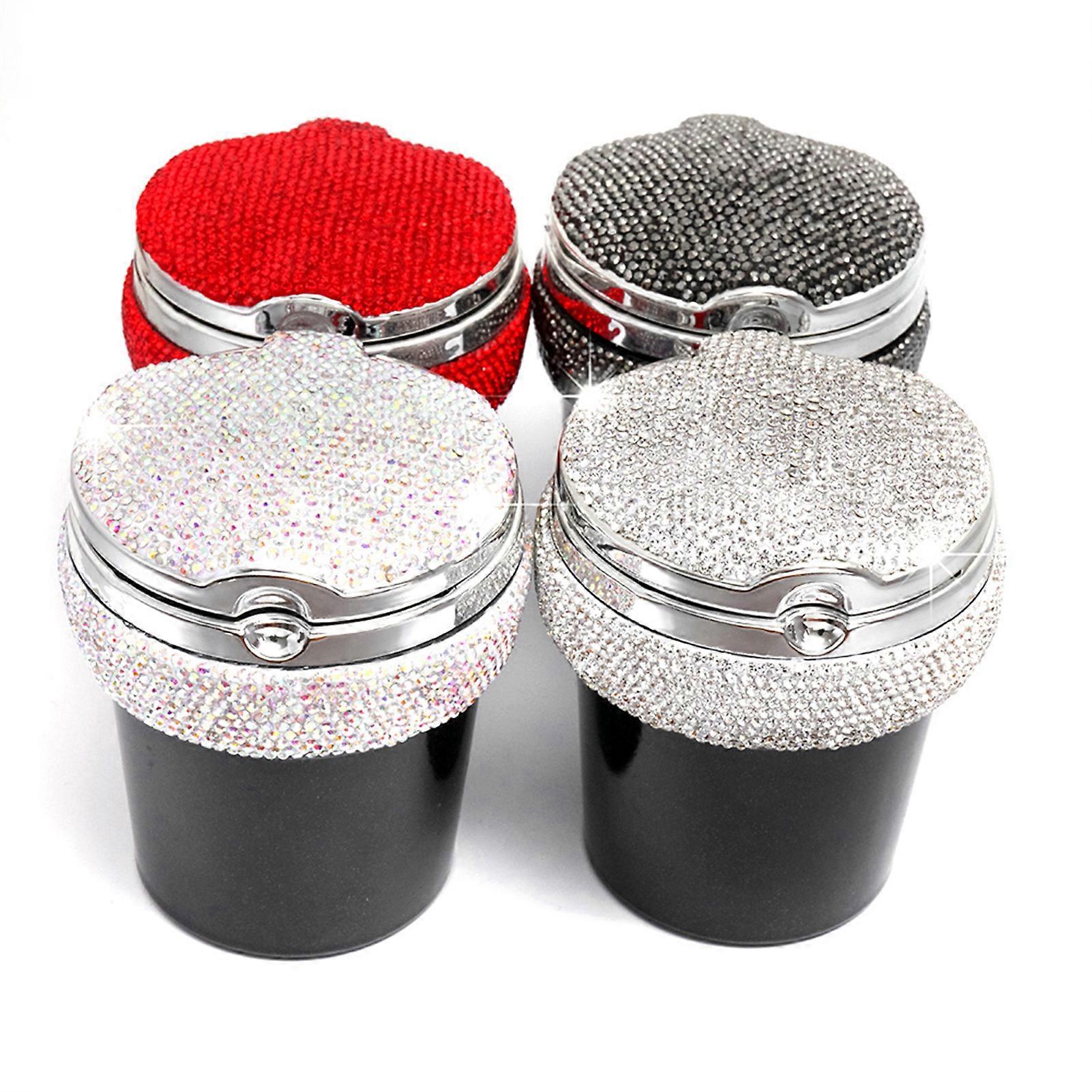 Bling Car Ashtray Crystal Diamond Portable Smokeless Stand Cylinder Cup Holder with Cool Blue Led Light Indicator Features: Made of premium quality ABS and bling diamond, environmental and durable. Fashionable and classic design, and adding your car a touching of luxury. It is nit only a car ashtray, but a great helper for storing other tiny wastes. Night vision with cool blue light, which gives you easy visual access to ashtray. Designed with a lid that can effectively reduce the harm of secondhand smoke. Specifications: Material: Plastic Color: Red, White, Black, Multicolor (optional) Item Size: shown as picture Package Size: 10*10*10cm / 3.94*3.94*3.94in. Package Weight: 160g / 5.64oz Package List: 1 * Car Ashtray