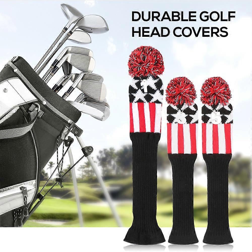 3 Pcs Golf Head Covers Set Knit Wood Covers #1 #3 #5 Durable