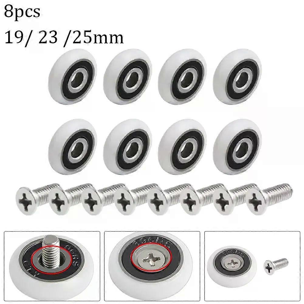 8Pcs Bath Cabinet Roller Wheel Replacement Shower Door Roller Runner Wheels 19/23/25mm Diameter With Screws Bathroom Accessories