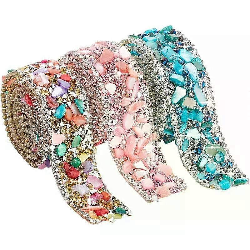 15 Yard 3 Colors Crystal Rhinestone Trim 2cm/07 Inch Hot Fix Ribbon Gem Stone Beaded Iron On Applique Embellishment for DIY