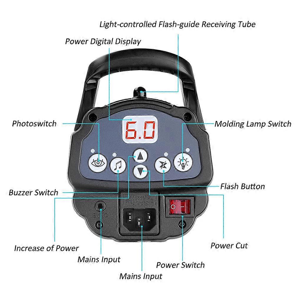 NiceFoto TB-300C Flash Lamp 300W GN66 5500K 150W Modelling Bulb ( 220-) Description: This is suitable for personal photo shooting, studio, and ceramic, utensil shooting light. Accurate 6-stops aperture power output control for easier exposure control, flash tube color temperature standard, not affected by power size, when using the standard hood, the color temperature remains at 5500k±200k, and the quick call back continuous shooting without pressure. Features: 1. It works with most products, durable and practical. 2. The precise color temperature makes each output stable and efficient! The ultra-fast return speed makes you get twice the result with half the effort. 3. The ultimate experience with the touch panel, the built-in memory function does not need to be adjusted again. 4. It adopts high-quality professional lamp and 150W modeling bulb, high stable light output, stable color temperature, high efficiency, long life and high brightness. 5. Super heat dissipation system, built-in cooling fan, multiple rows of cooling holes, rapid drop. 6. Accurate 6-level aperture power output control can be fine-tuned by the 0.3-level optical device. 7. The high-quality capacitors are used for ultra-fast power-on, continuous shooting without pressure, and the fastest return speed is 0.1S. 8. A variety of triggering methods, light-controlled synchronous sensing, experimental flash button; ultrasonic remote control or sync flash can be used to synchronize the flash. 9. The flash has its own 5A protection tube and overheat protection program to protect the flash. Specification: Condition: Item Type: Flash Lamp Model: TB-300C Material: Aluminum Alloy Color: Black Color Temperature: 5500K±200K Power: 300W Flash Index (CN): 66 Power Range: 6-level Aperture Adjustment - Keshi 0.3-level Aperture Fine-tuning Insurance Tube: 5A Callback Time: 0.1-0.7S Light Control Distance: ≥15M Styling Light Bulb: E27 150W Brightness Adjustable 8 Files Trigger Mode: Light control synchronous sensing, experimental flash button; can use ultrasonic remote control or sync flash to synchronize flash Product Size: 34*18*11cm / 13.4*7.1*4.3inch Packing Dize: 41.5*23.5*18.5cm / 16.3*9.3*7.3inch Gross Weight: 1803g / 63.6oz Net Weight: 2447g / 86.3oz Package list: 1 x Flash Lamp Body 1 x Flashbulb 1 x Power Adapter 1 x User Manual Notes: 1. The actual product color may deviate from the photo due to light. 2. There may be a slight deviation in the measurement of product.