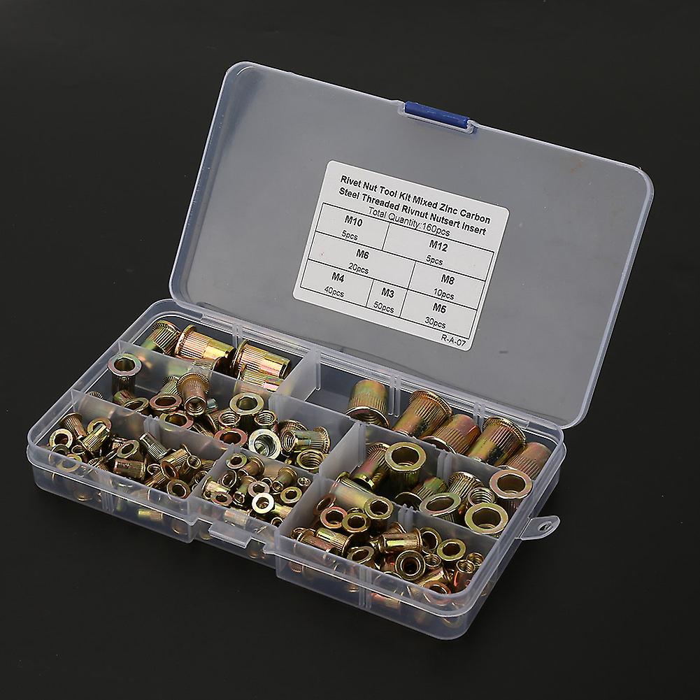 160Pcs Carbon Steel Flat Female Blind Rivet Nuts M3-M12 Set