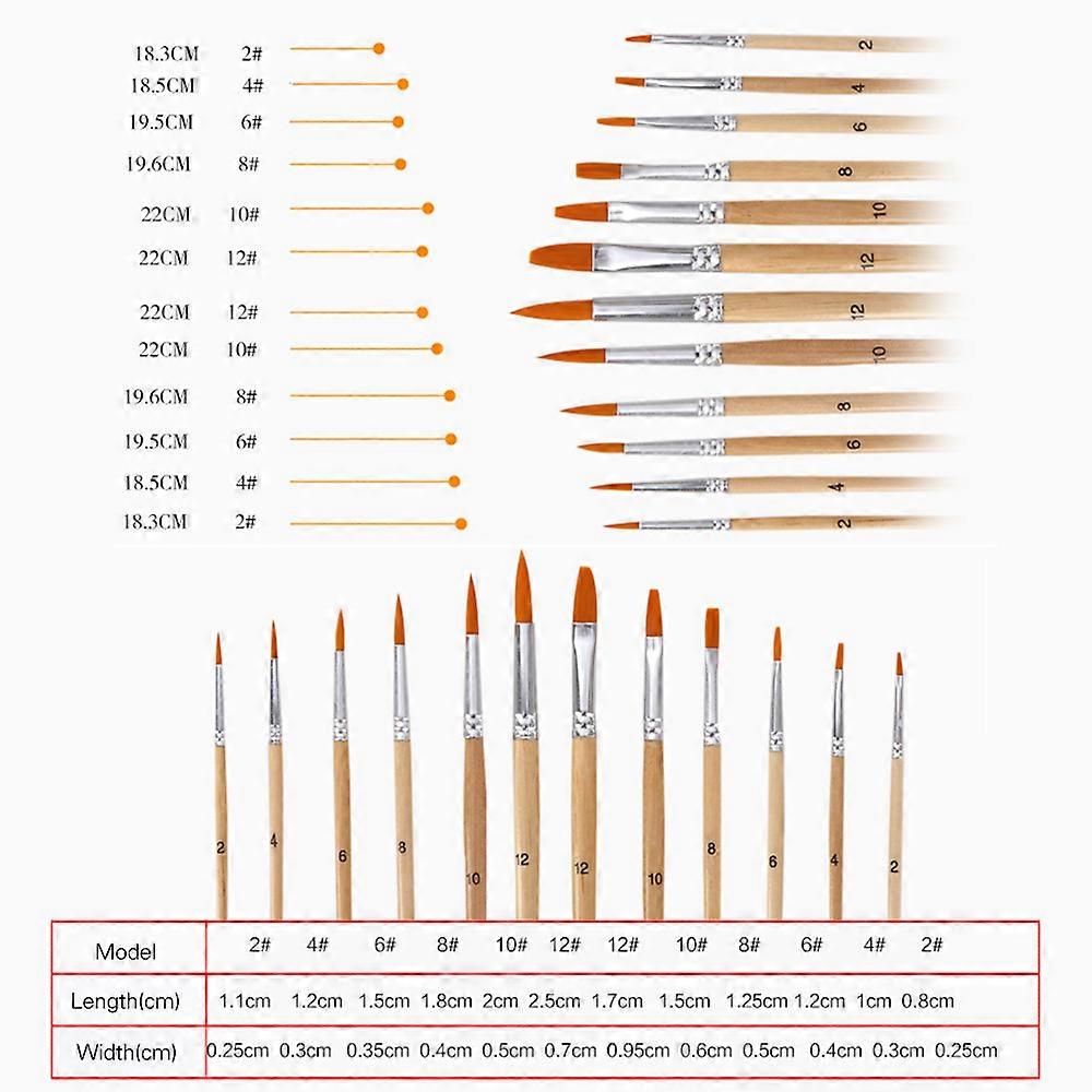 12pcs Nylon Hair Paint Brushes Set for Watercolor Acrylic Oil