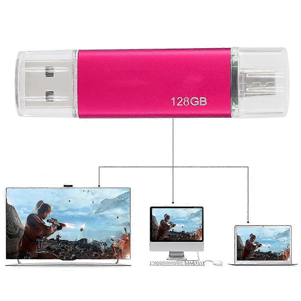 Rosy Dual Use High Speed OTG USB 2.0 Flash Drive 128GB 7x2x0.6cm