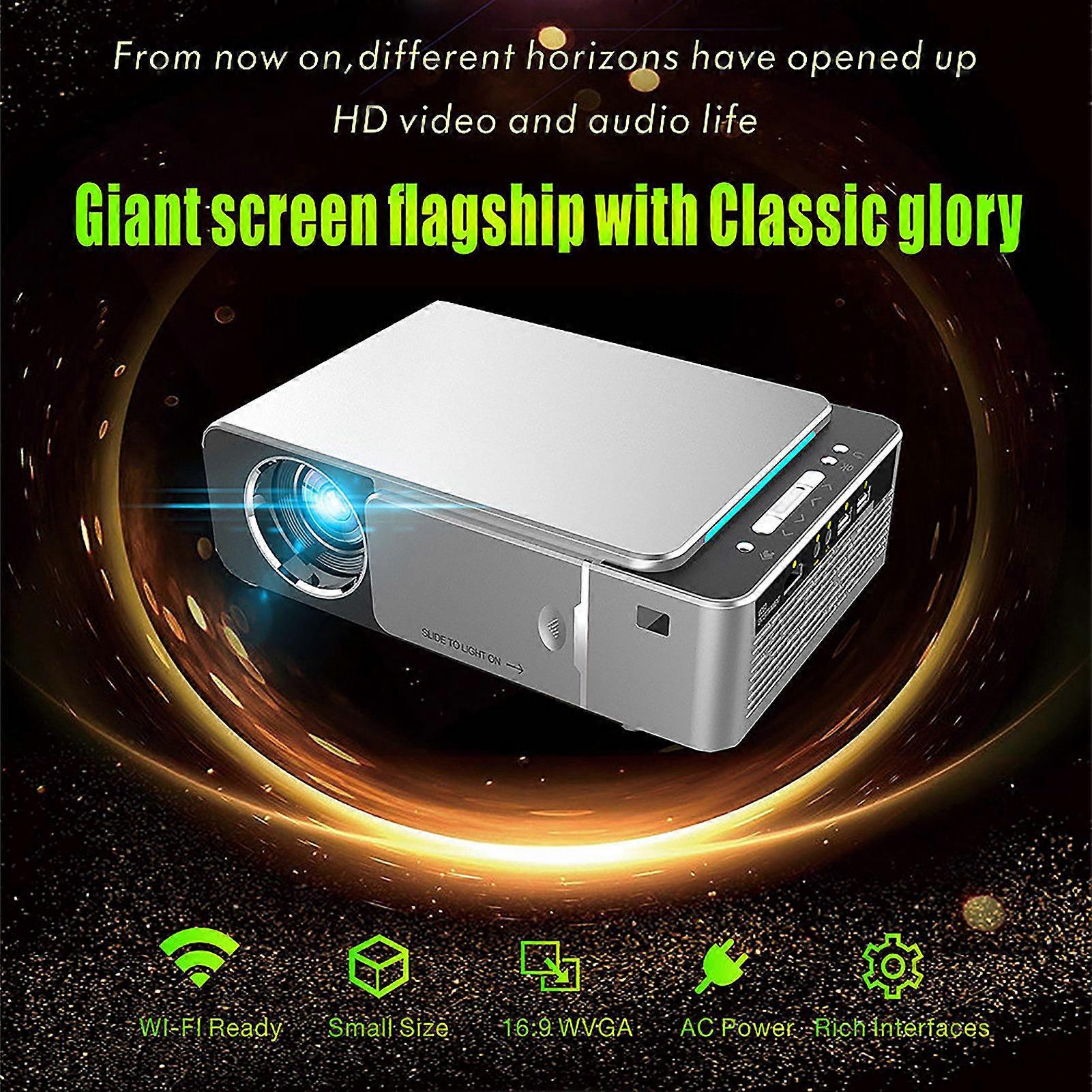 Portable HD WiFi Mirroring Screen Silver LED Projector 1080P Remote Control Features: 1. 1280 physical resolution, brightness up to 3500lm. 2. Dedicated decoding program for big screen, support up to 1920*1080 hardware decoding. 3. Support Optical Trapezium Adjustment for multi-angle large screen watching experience. 5. Built-in composite diaphragm high volume speaker to construct extended Hi-Fi sound effect. 6. Support multiple screens interaction, big small screens in one hand, all screens simultaneous display. 7. HD image proccess to lighten sawtooth feeling for outstanding details and HD smooth image. 8. Adopt diffuse reflection imaging to protect eye health. No asthenopia after long time watching. suitable for the whole family. 9. Double-spiral fan system, high efficient heat dissipation, turbine circulation airflow concealment design. Fully optimized air flue curve for more efficient heat dissipation to ensure stable system running. 10. Suitable for IOS11, all screens simultaneous display available. (With a Mirroring Device) 11. Multiple expansion interfaces. Game host connection available. Support USB, HDMI, YGA, headset interface, AV, KTV device, sound device, etc. 12. Simply toggle the slip cover to start the device. WiFi network connection. Meet projector fans' various demands and create entertainment. Specifications: Product Model: T6 Imaging Technic: LCD Standard resolution: 1280*720 Max Brightness: 3500lm Brightness Average: 98% Contrast Ratio(Standard): 3000:1 Projecting Image Size: 30-170 in Projecting Distance: 1-4M Net Weight(Bare Metal): 1.28kg Size: Approx. 25 x 16 x 7.7 cm/9.84 x 6.30 x 3.03 in Menu Language: Chinese, English, French, German, Spanish and Multiple Language. Light: LED Total Power: 70W Audio Output: 3.5mm Built-in Stereo Projector Lens: Multi-level Glass Lens Image Ratio: 4:3/16:9 Image Reversing: Support Projection Mode: Orthographic Projection/Rear Projection/Hanging Projection Operating Noise: <25dB 3-second Boot: Support Remote Control: Support Remote control power supply: 2 x AAA batteries( not included) OSD Screen Display: Support Infrared Remote Control: Support Package List: 1 x User Manual 1 x Projector 1 x VGA Cable 1 x Remote Controller 1 x Power Cable 1 x Cloth Note: Please note that the new type and old type of this product will be sent randomly, and make sure you will not mind before ordering.
