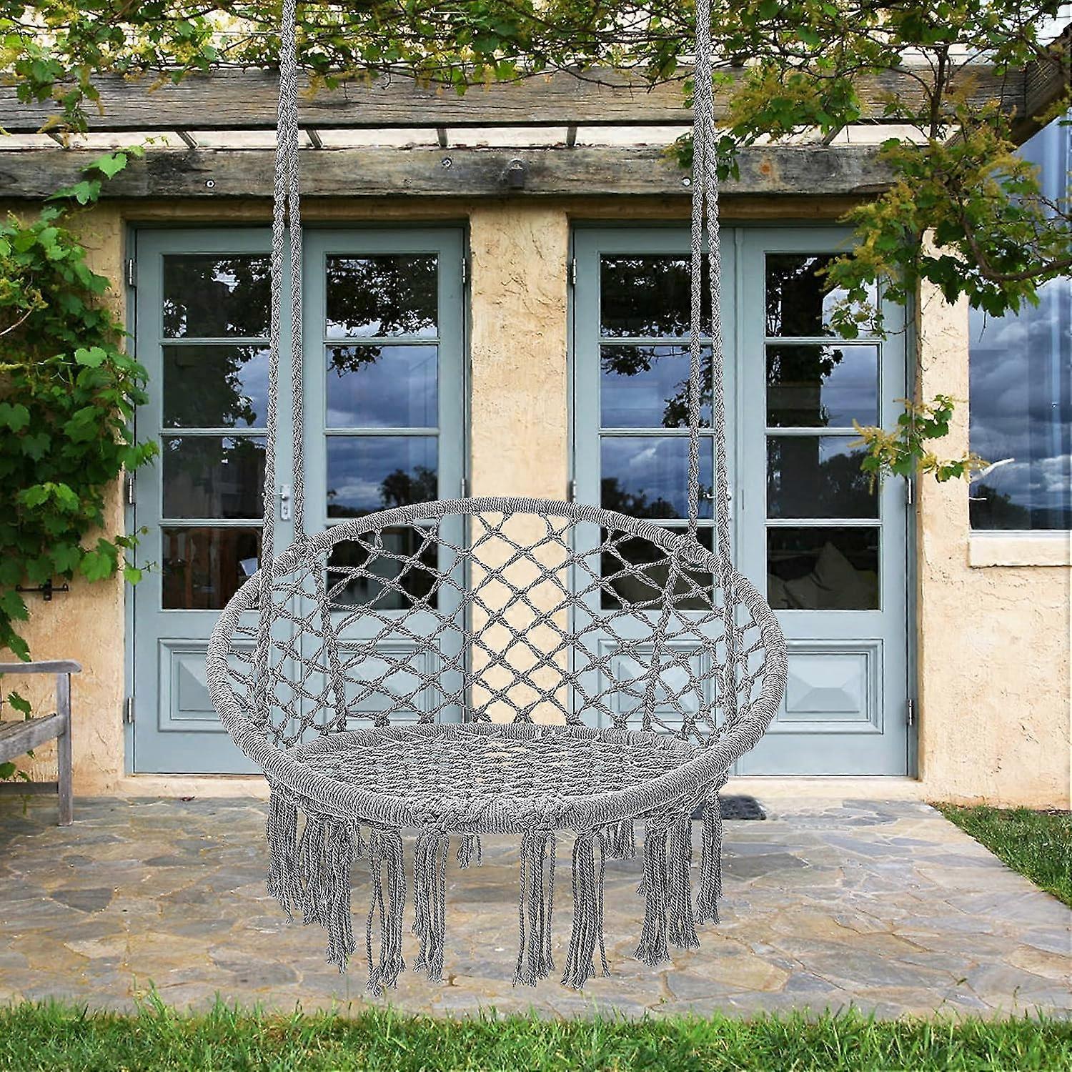 Macrame Hammock Hanging Rocking Chair, Suitable For Bedroom, Outdoor, Children, Adults, Huge Load-bearing Capacity(light Grey)