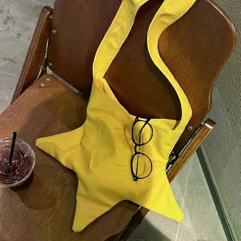 Women Cute Casual Star Shape Shoulder Bag Solid Color Canvas Crossbody Bag Female All-match Large Capacity Handbag for Shopping