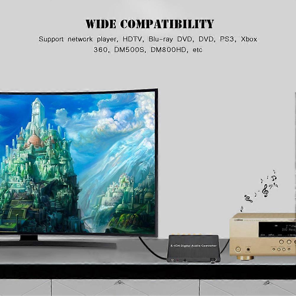 Automatic Fiber to Coaxial Audio Converter 5.1 CH Black, 13.8x9.8x2.1cm