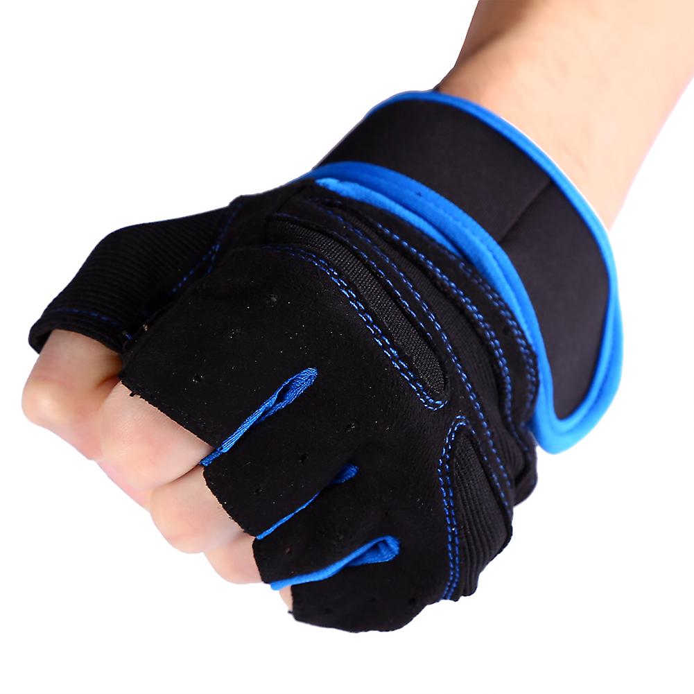 2 Pcs Blue Weight Lifting Gloves XL Wrist Wraps Gym Fitness Half