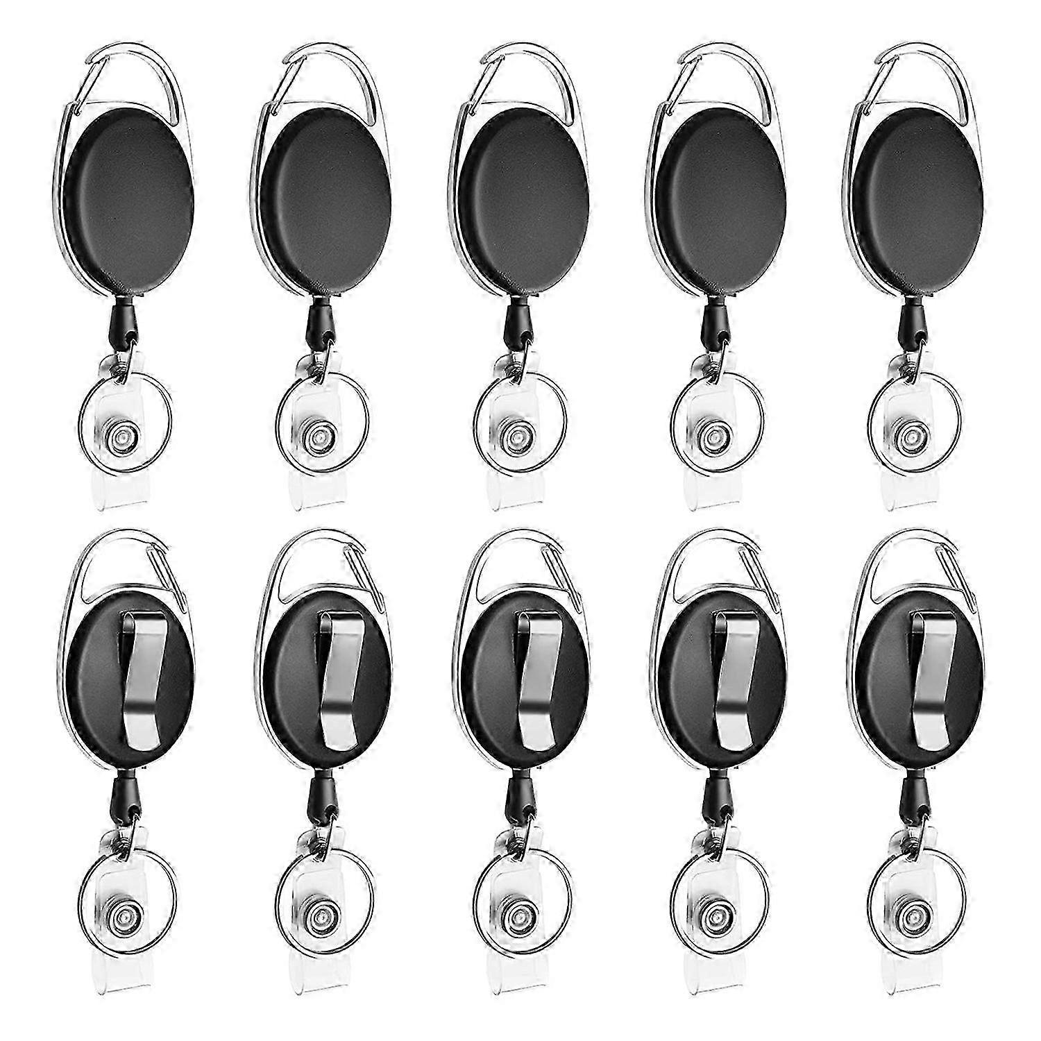 10 Pack Retractable ID Badge Reel with Carabiner Clip & Key Ring, Black-gn