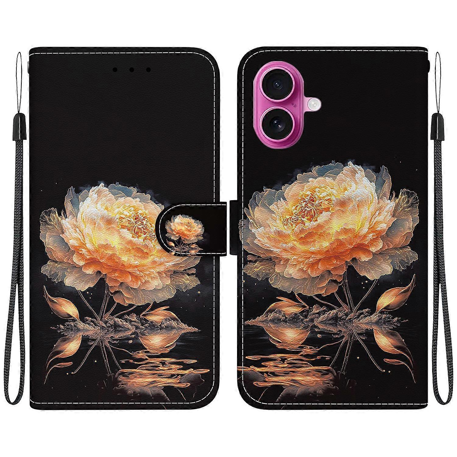 For iPhone 17 Wallet Phone Case Anti-Drop Leather Flip Cover Pattern Printing with Strap - Gold Peon